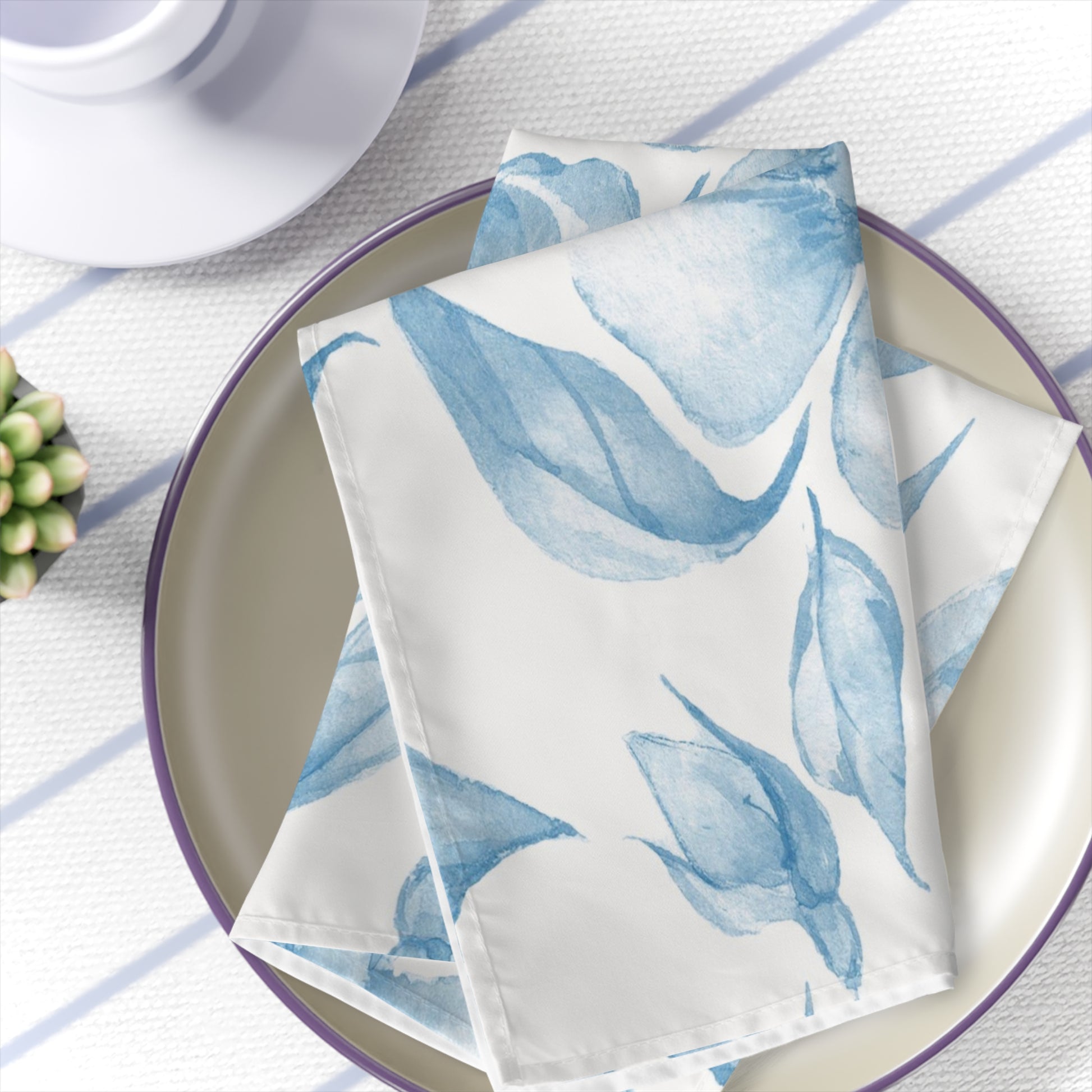 Made with luxuriously soft broadcloth fabric, printed on the top with non-printed white bottom, our 4-piece sets are the ideal choice for personalized cocktail napkins, wedding napkins, and more.
