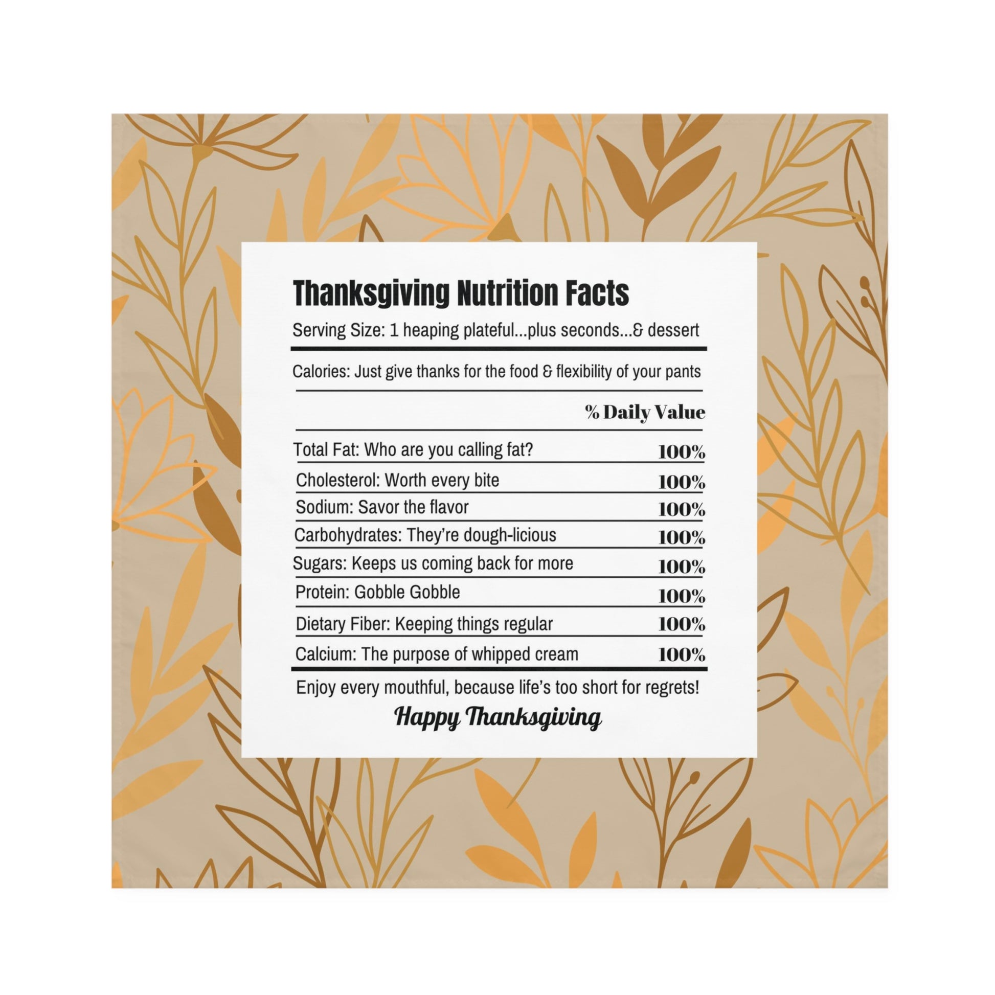 Thanksgiving Calorie Tan & Gold Napkins